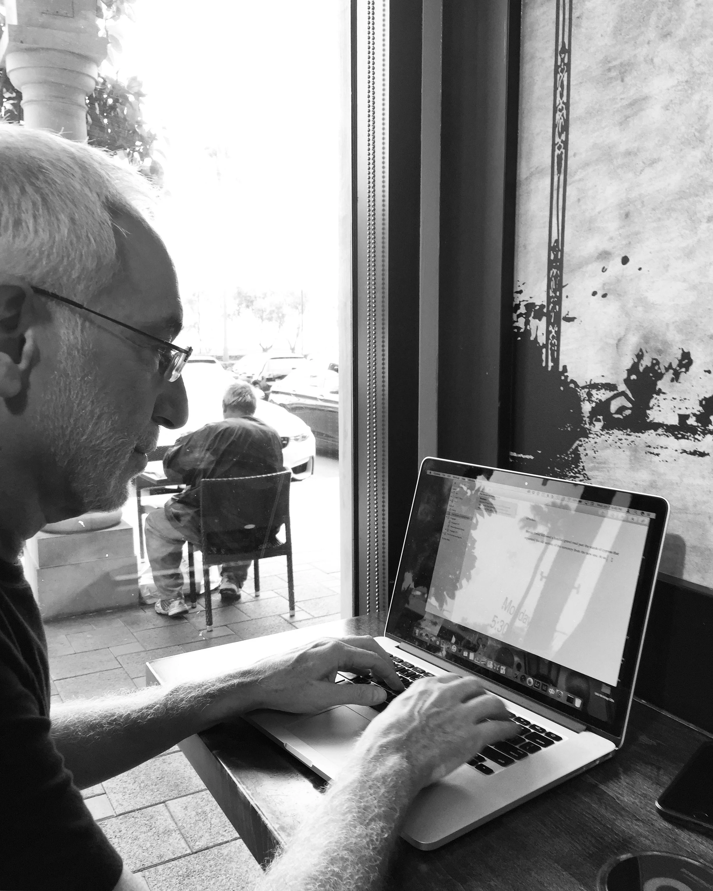 Photos: #1 - Me, working at the Starbucks in Newport Coast, CA, where I wrote large chunks of “The StarQuest,” “Acts of Surrender” and “Pilgrimage: A Fool's Journey” and small chunks of The Bard of Bryn Doon; #2 - My first typewriter, a green Hermes. #3 - Photographer Kathleen Messmer captured me at Albuquerque's Chocolate Dude as part of a photo shoot for the cover of “Writer's Block Unblocked: Seven Surefire Ways to Free Up Your Writing and Creative Flow”