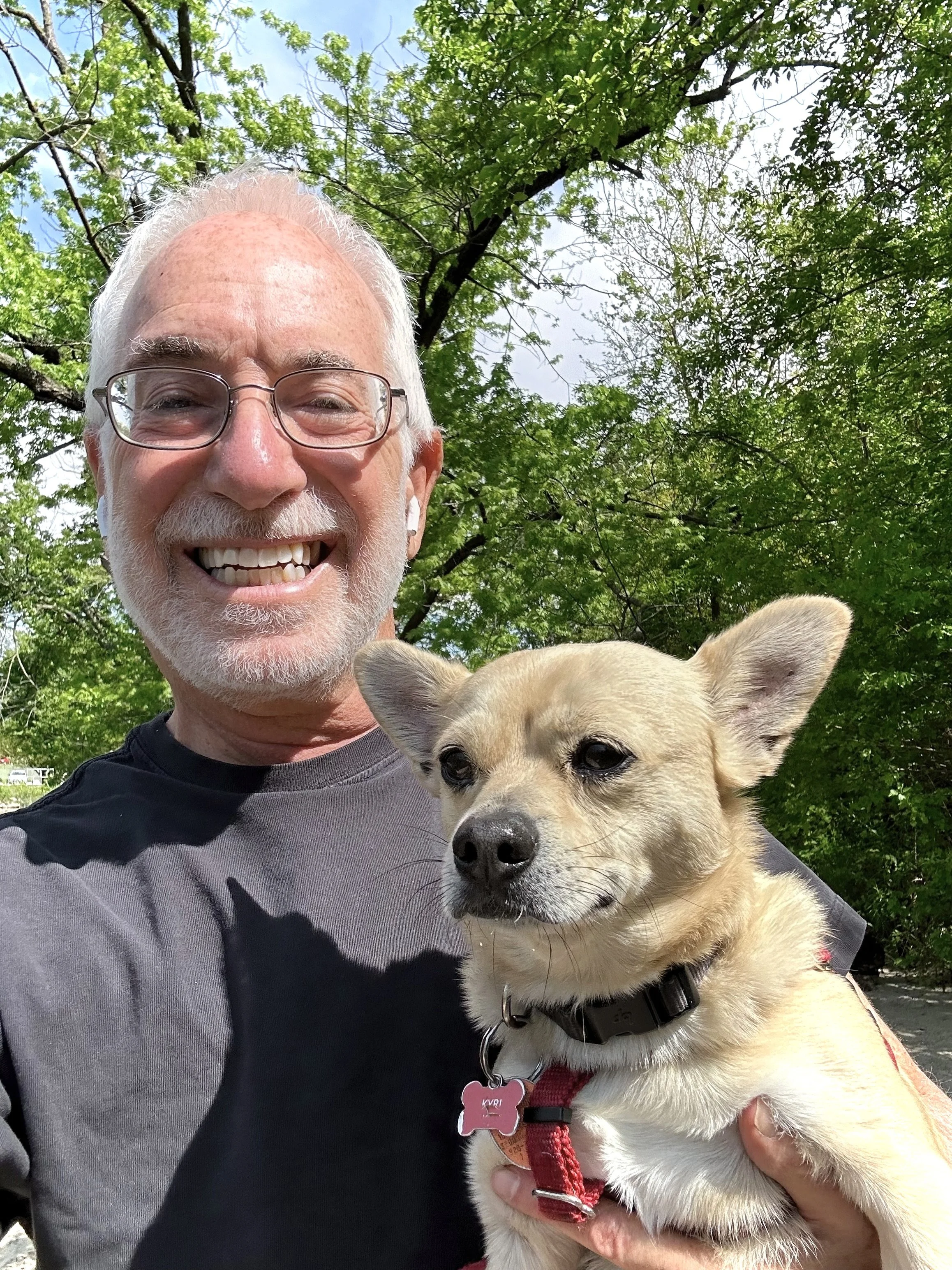 Photos: 1/ The storyteller and his storied dog (Kyri is named after a character in The MoonQuest) in Iowa’s aptly named Story City. 2/ It’s January 2023, and Kyri is making sure he’s also packed for the journey!